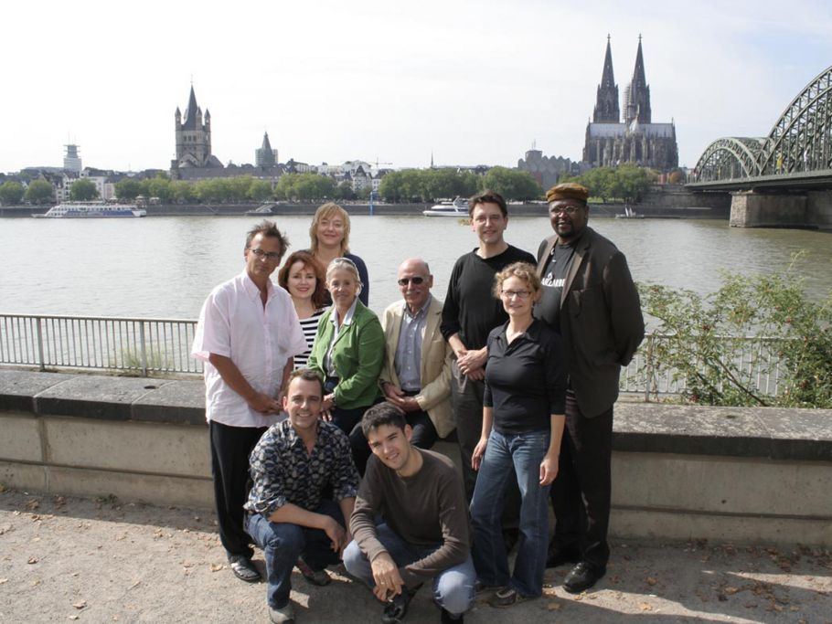 Dieses Foto hängt bis heute im Flur vor dem Schul-Sekretariat. Hintere Reihe, von links: Mike Herting, Christel Achilles, Beate Schüler, Claudia und Gerd von Velsen, Manos Tsangaris, Kirsten Nepstad, Carlos Robalo. Vorn von links: Max von Velsen, Raoul Mörchen.