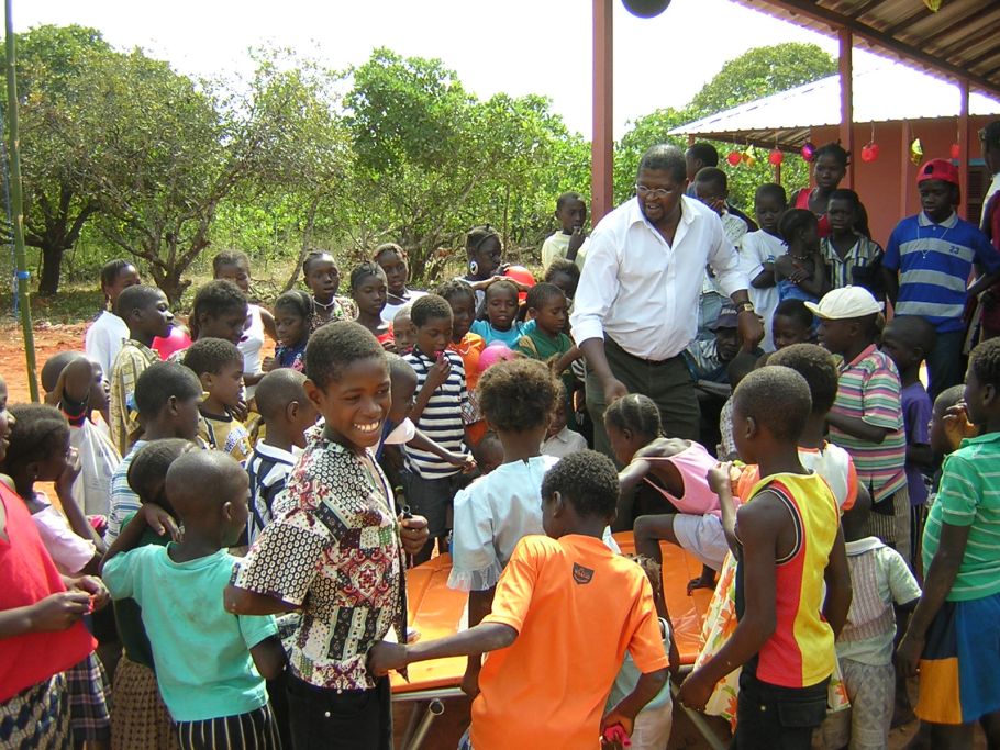 Während die Alten lange Reden halten, sorgt unser Freund Carlos schon für Begeisterung bei den Jungen. Spiel und Spaß gehören von Anfang an dazu. Schon früh dürfen wir erfahren, was uns noch heute staunen lässt: Schule ist hier ein Vergnügen!