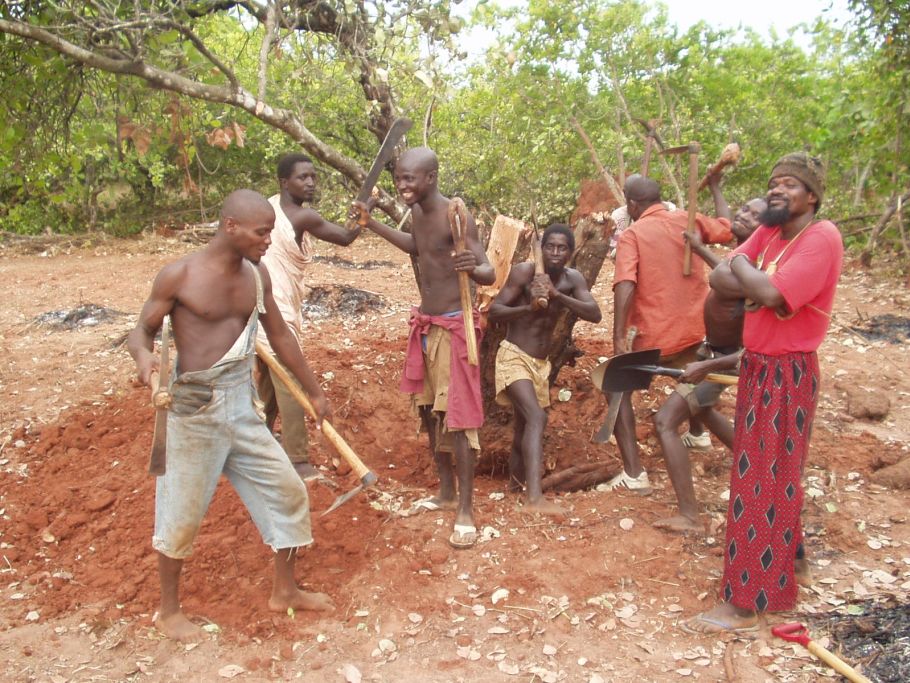 Bisher haben wir uns irgendwie beholfen, jetzt soll ein echter Sportplatz her! Dafür müssen Bäume und Gestrüpp weichen. Die Kids erledigen das weitgehend allein.