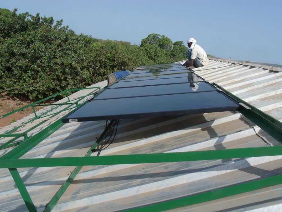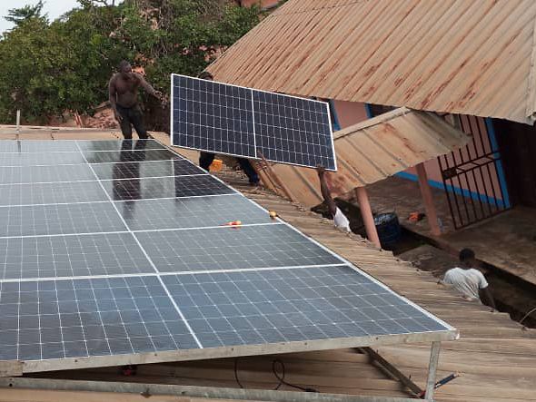 Die Paneele der neue Solaranlage werden montiert. Sie wurden der Schule von einer ortsansässigen Firma geschenkt. Ein echter Segen, denn die alte war völlig marode.