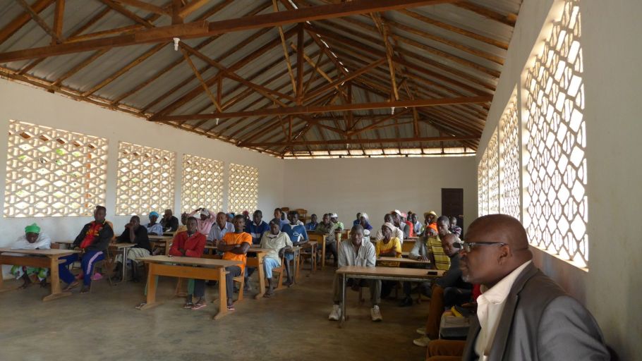 Der größte Raum der Schule dient von nun auch als Versammlungsraum zum Beispiel für Elterntage und Dorfversammlungen. In der langen Regenzeit eine willkommene Alternative zu den sonst so beliebten Treffen im Schatten der Cashewbäume.