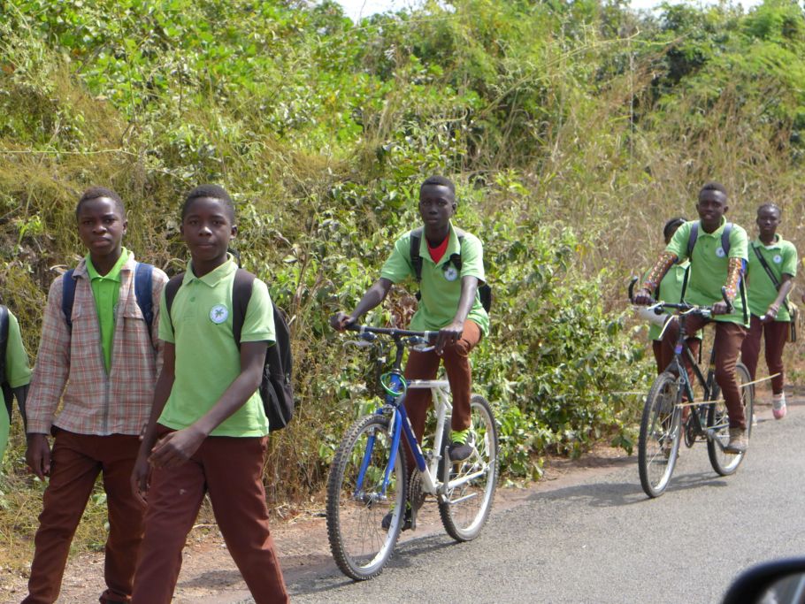 Der Weg zur Schule ist für viele Kinder lang und beschwerlich. Einige brauchen fast eine Stunde, bis sie von ihren Häusern entlang der großen Straße endlich durch das Schultor gehen. Nur einige ältere Kinder haben Fahrräder.