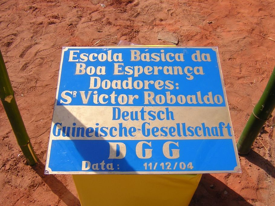 „Grundschule zur guten Hoffnung. Stifter: Victor Robalo und die Deutsch-Guineische Gesellschaft DGG. Datum: 11.12.2004“
