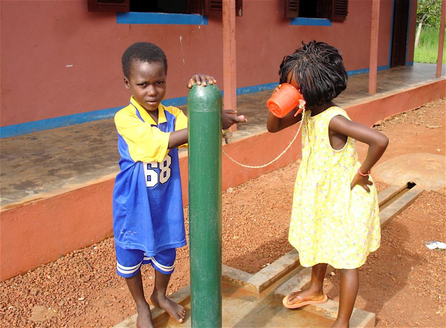Zu Beginn des zweiten Schuljahrs können die Kinder erstmals selbst Wasser zapfen. Außerhalb des Schulgeländes haben wir ein zweite Entnahmestelle für die Menschen der umliegenden Ortschaften gebaut. Auch sie können nun ohne Sorgen jederzeit sauberes Wasser trinken.