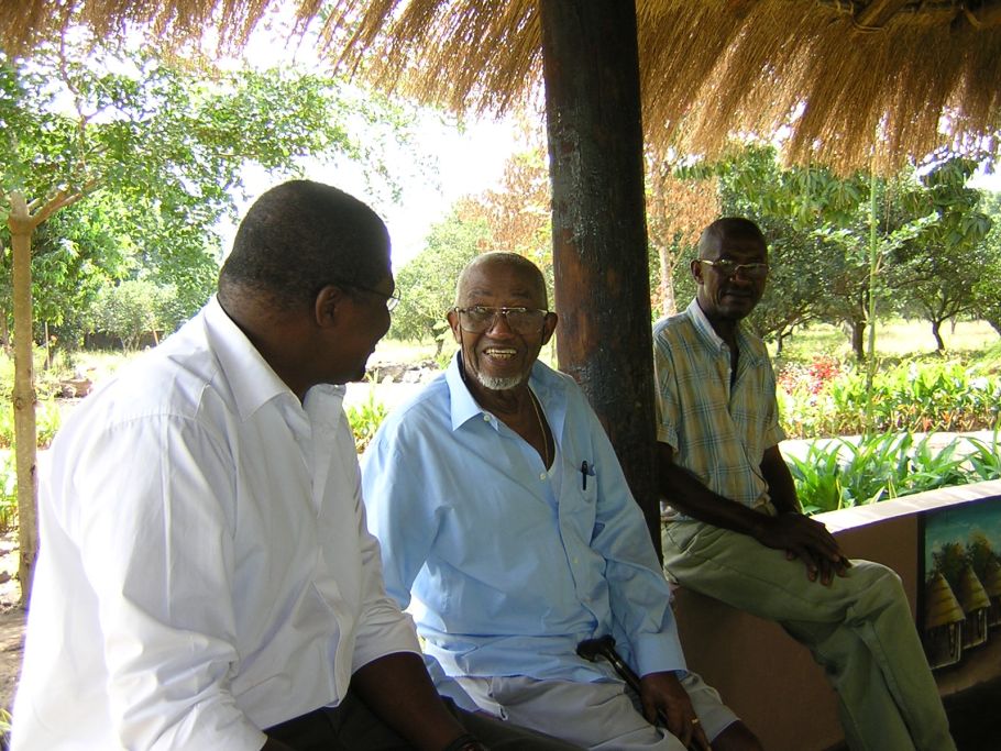 In unmittelbarer Nachbarschaft des Schulgeländes befindet sich die Farm von Victor Robalo. Hier sitzt er mit seinem Sohn Carlos (links) auf der Veranda seines Hofs.