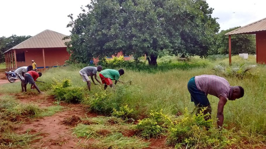 Jedes Mal das gleiche: Nach dem Ende der Regenzeit ist das Schulgelände heillos überwuchert. Die älteren Schüler helfen beim großen Saubermachen. So halten wir auch wenn es um andere Arbeiten geht: Verantwortung und Einsatz für die Schule ist Pflicht. Große Überredungskünste braucht es dafür nicht.